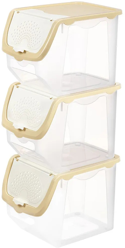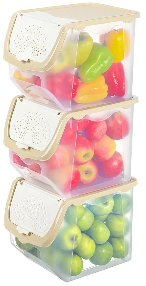 Набор состоит из трех контейнеров по 12 литров для хранения овощей и фруктов. Контейнеры выполнены из пищевого полипропилена. Они полностью безопасны и подходят для хранения продуктов. Такой набор станет удобным дополнением в вашем доме!