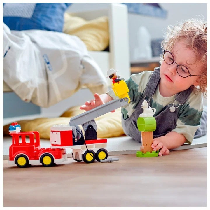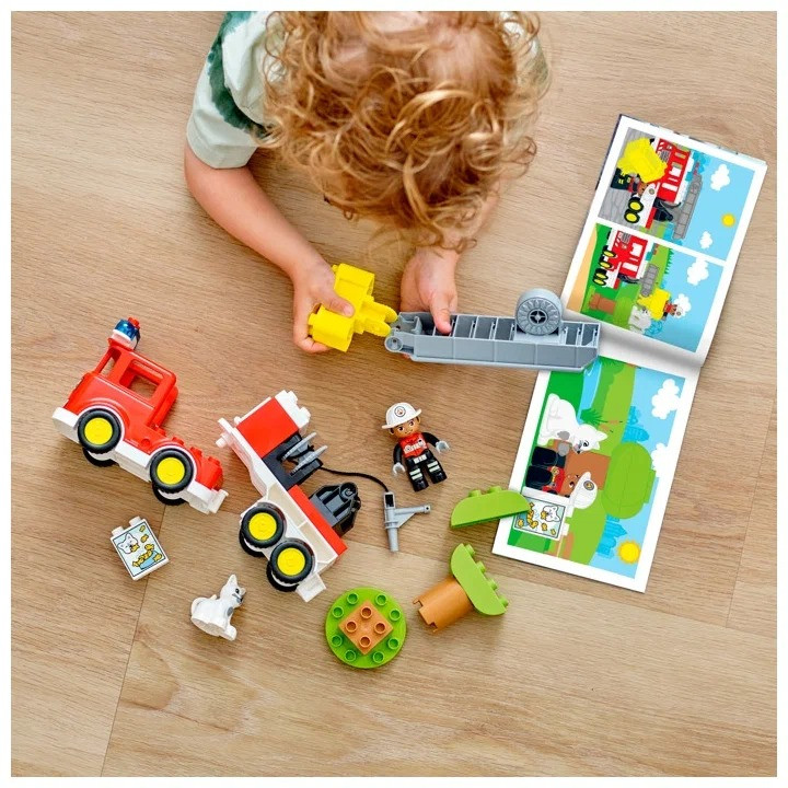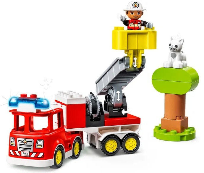 LEGO (ЛЕГО) Конструктор Duplo 10969 Пожарная машина. Fire TruckВ данный момент этот товар отсутствует в продаже. Возможно, у нас найдется аналогичный или похожий товар здесь. Серия: LEGO Duplo Кошка застряла на верхушке высокого дерева! Пожарная машина мчится к месту происшествия с мигалкой и громкой сиреной. Ваш маленький герой может нажимать и поворачивать рычаг машины, чтобы поднять лестницу и повернуть корзину. Если бедная кошечка боится сдвинуться с места, то тут есть лакомства, которые могут соблазнить ее спуститься. Ну а если и это не поможет, пора доставать шланг с водой! |