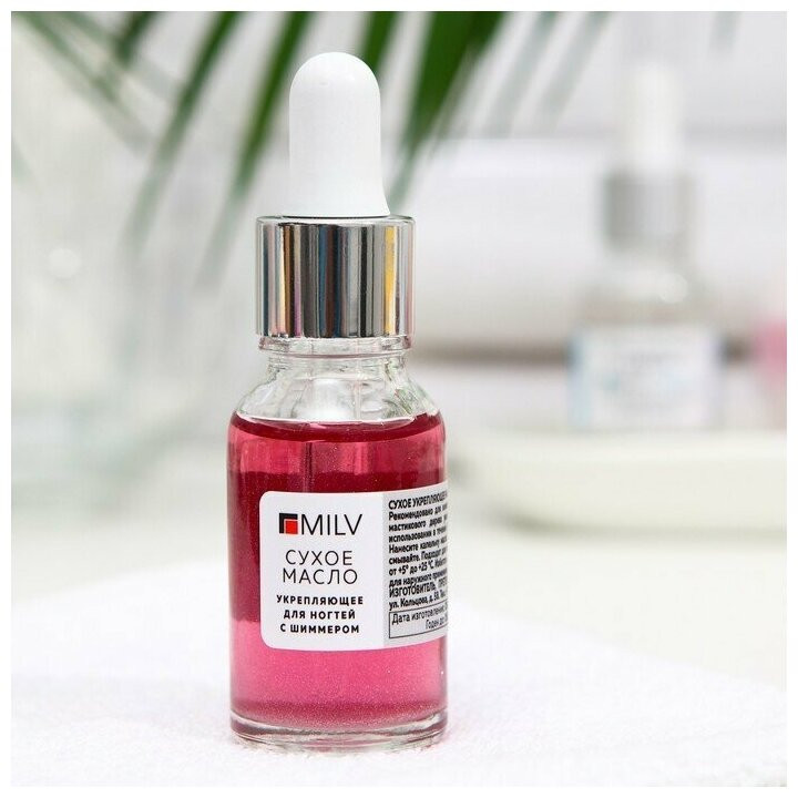 MILV Масло для ногтей сухое укрепляющее с шиммером «Cherry»