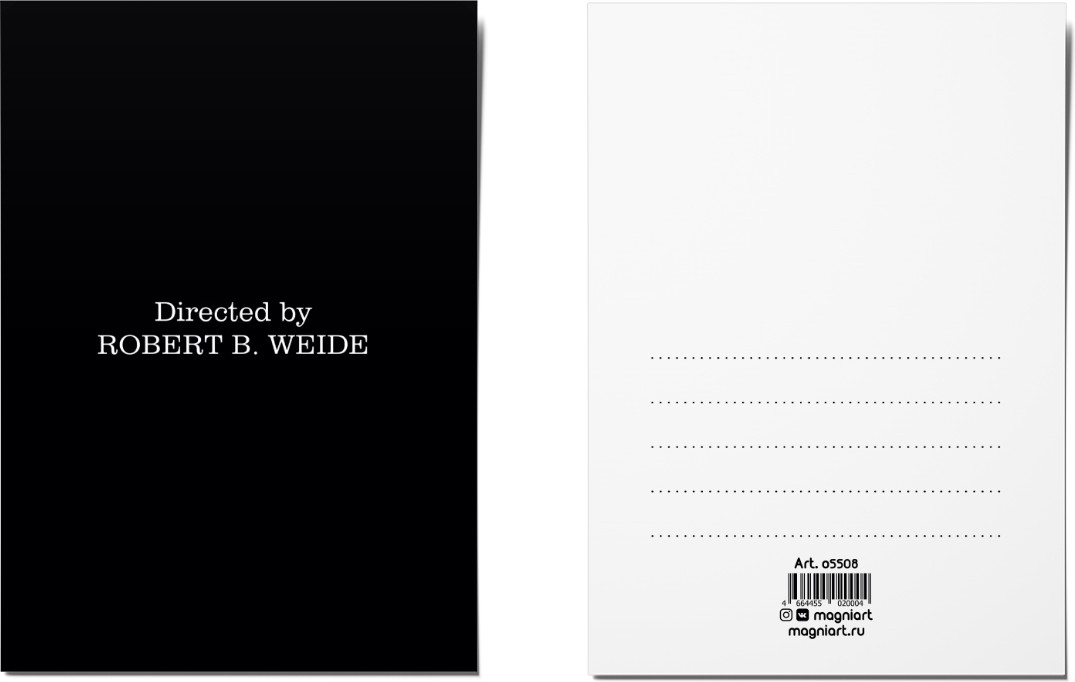 MagniArt Открытка почтовая «Directed by»В данный момент этот товар отсутствует в продаже. Возможно, у нас найдется аналогичный или похожий товар здесь. На обратной стороне присутствует место для оформления отправления, наклеивания марки и пары строк от отправителя. Открытка напечатана на дизайнерской бумаге с приятной на ощупь структурой. |