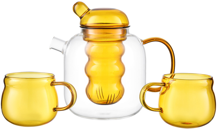 Этот чайник привлекает внимание необычным дизайном, что делает его заметным акцентом на любой кухне. Удлиненный «носик» и удобная ручка обеспечивают комфортное использование. Наряду с оригинальным внешним видом емкость из стекла отличается устойчивостью к износу, хорошо очищается от загрязнений в обычной мыльной воде. В набор входят две чашки, которые идеально сочетаются с заварником по форме и цвету.