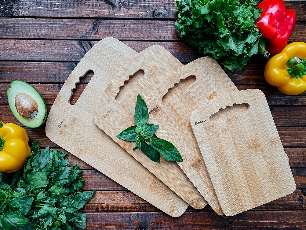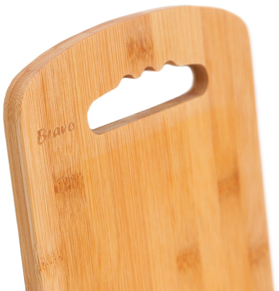 У разделочной доски имеется вырезная ручка, она удобна для переноски и хранения. Бамбук считается экологичным, антисептическим, гигиеничным, долговечным и не впитывающим влагу материалом, поэтому разделочная доска из бамбука отлично подойдет для обработки и нарезки мяса, рыбы, хлебобулочных изделий, овощей, зелени и прочих продуктов. Доска устойчива к механическим нагрузкам и не тупит нож. Кроме того, разделочная доска из бамбука отлично впишется в интерьер любой кухни.