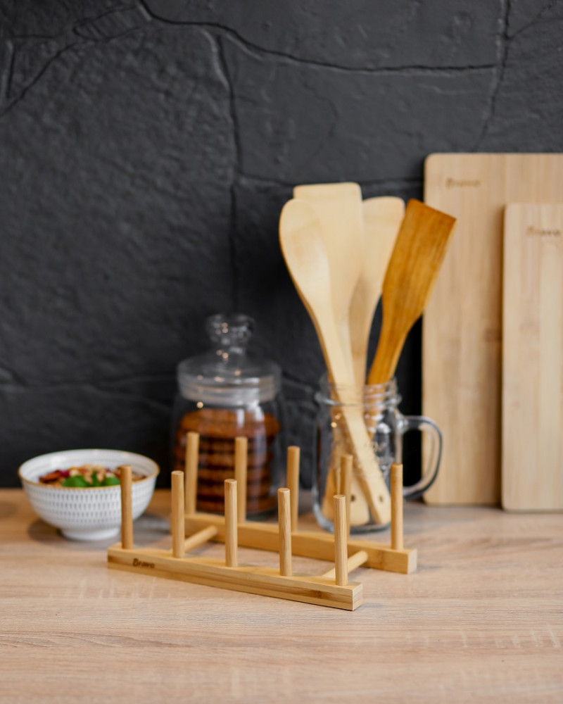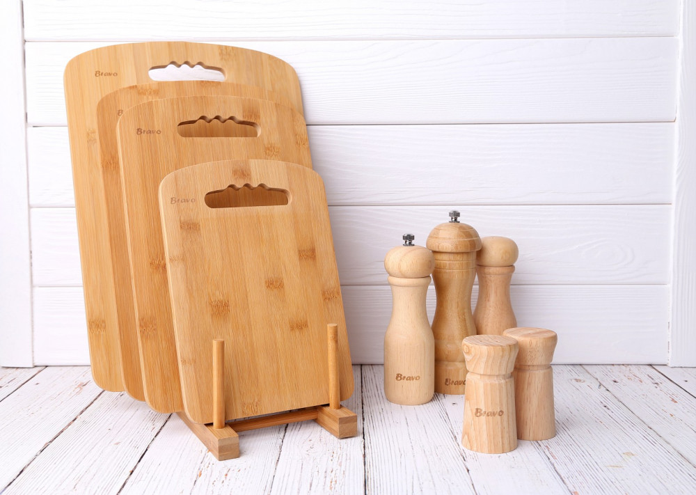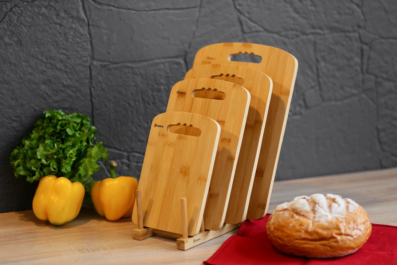 Bravo Подставка для разделочных досокВ данный момент этот товар отсутствует в продаже. Возможно, у нас найдется аналогичный или похожий товар здесь. Разделочные доски необходимо сушить и хранить в вертикальном положении, поэтому их лучше покупать вместе с подставкой — удобно, красиво, практично. Подставка рассчитана на четыре доски. Так же подставку можно использовать для хранения крышек от кастрюль, блюд и различной кухонной посуды. Подставка для досок выполнена из бамбука, а он считается экологичным, антисептическим, гигиеничным и долговечным материалом. |