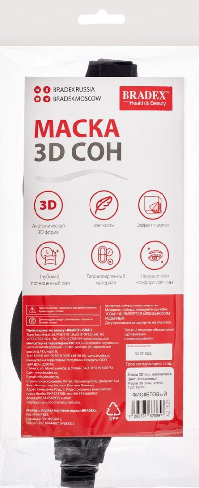 Очень хорошая маска для сна ! Большая и с удобным углублением для глаз , лежит комфортно . Немного может просвечивать под области носа но это индивидуально у всех лежит . В целом рекомендую !