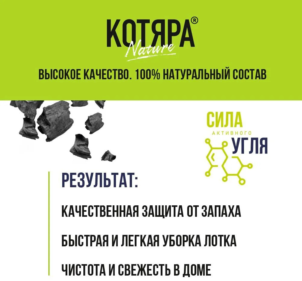 Котяра Наполнитель комкующийся с активированным углем-20% +212 комкуется поглощает запах бюджетный экономичный каменеет