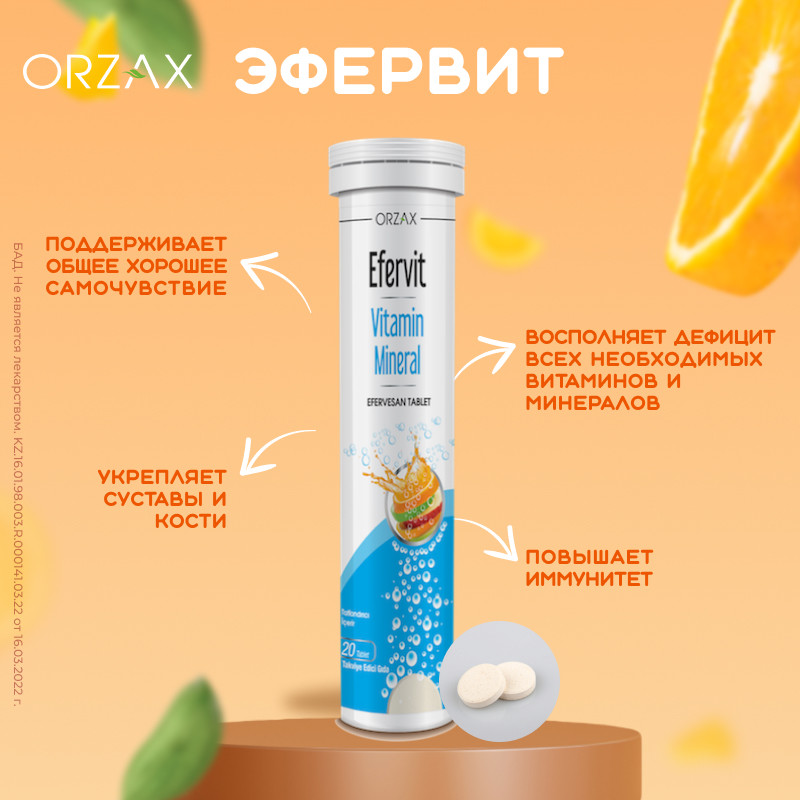 Orzax Мультивитамины «Efervit»В данный момент этот товар отсутствует в продаже. Возможно, у нас найдется аналогичный или похожий товар здесь. Мультивитамины Efervit Multivitamin — шипучие таблетки на основе 12 витаминов и 8 минералов для поддержки работы организма в течение всего дня. Таблетки быстро растворяются в воде, что делает их применение удобным и вкусным в виде напитка с приятным цитрусовым ароматом. |