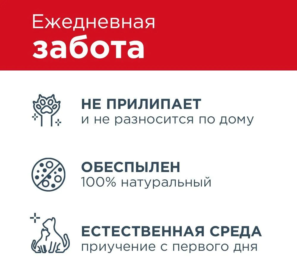 Комкуется отлично в плотный комок, от которого ничего не отваливается и сам комок не рассыпается, поэтому запаха нет. Все это работает, естественно, при ежедневной уборке.