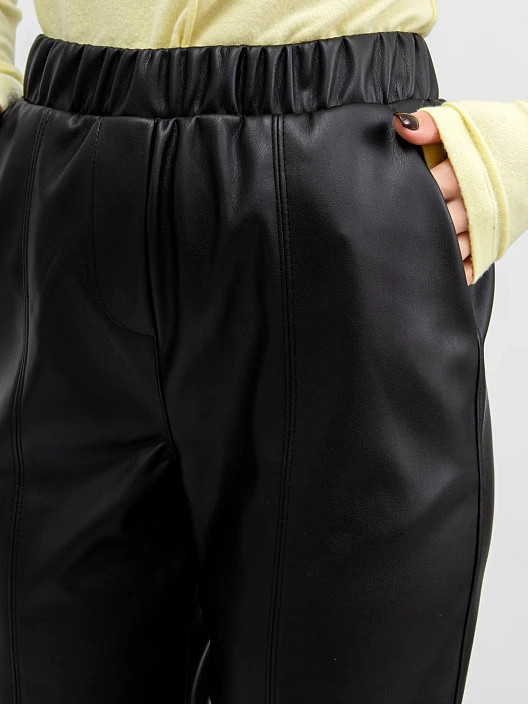 В передней части брюк выше колен имеется шов, где соединяются 4 полочки передней части штанин. Не все швы состыкованы и выполнены не совсем точно, а качество пошива не плохое. Но я всё равно оставила, так как понравились. Конечно же, брюки забрала себе моя дочь.