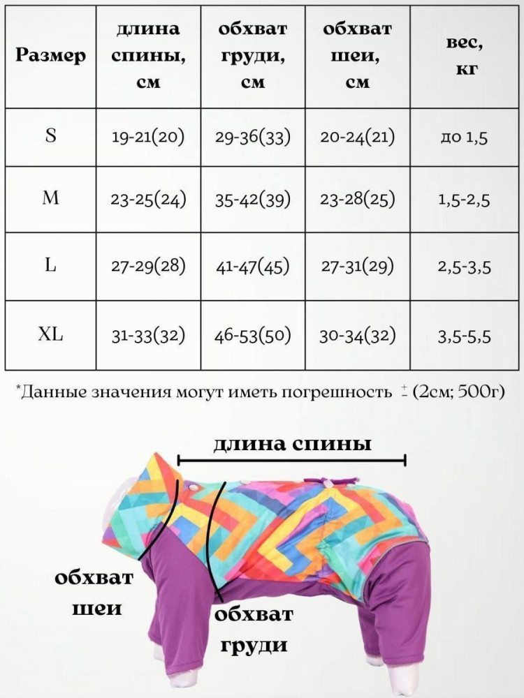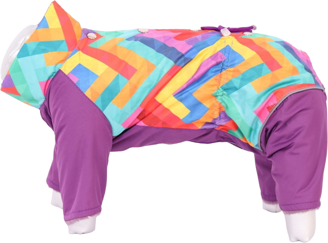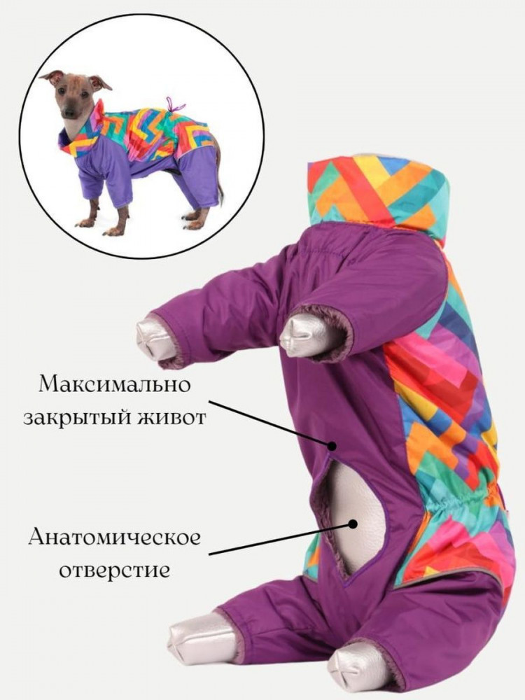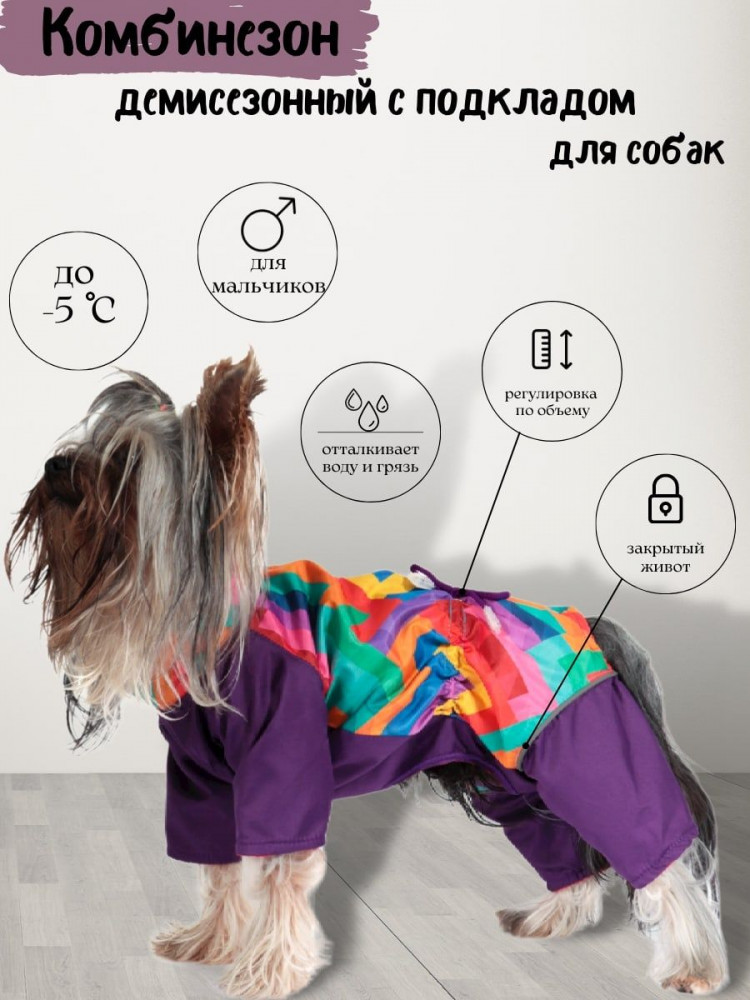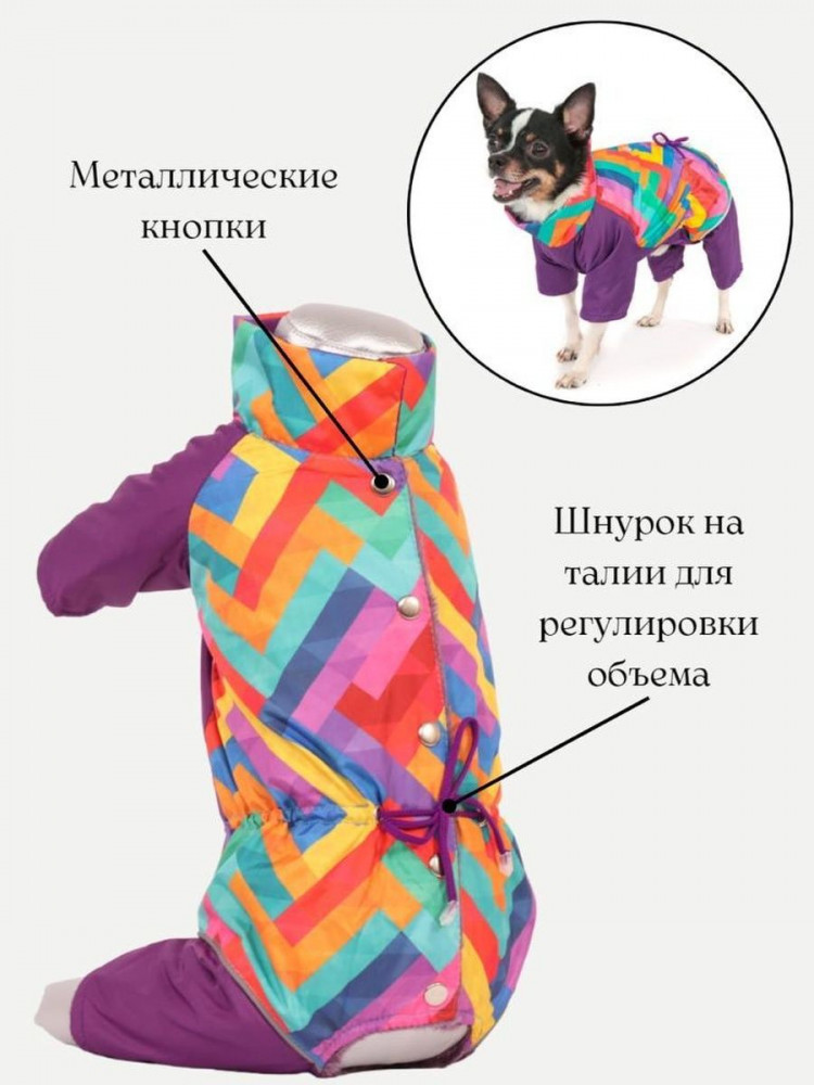 Практичный и функциональный комбинезон «Спектр» создан дарить тепло и уют в условиях переменчивой погоды. Модель объединила всё лучшее для вашей собаки. Костюм выполнен из курточной ткани с водоотталкивающей пропиткой. Не пропускает влагу, защищает от ветра и грязи. Главное преимущество комбинезона — максимально закрытый живот, ваш питомец будет максимально защищен от грязи и холода. Этот демисезонный комбинезон внесёт немного праздника в серые, осенне-зимние будни.