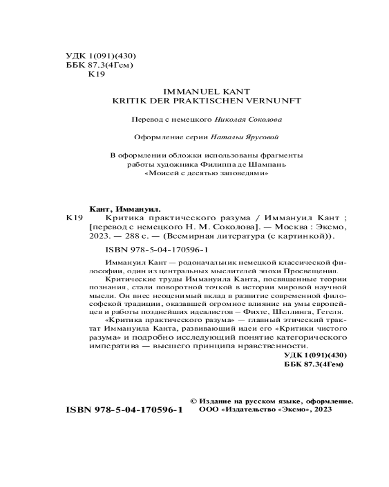 | Критика практического разума Иммануил Кант