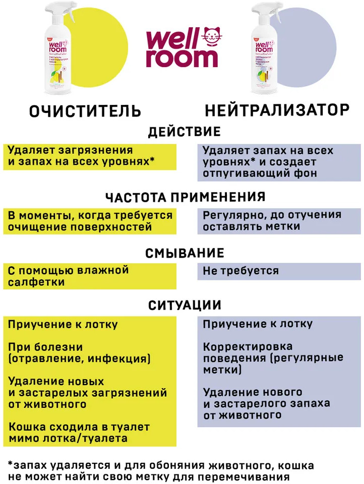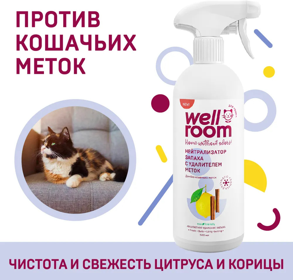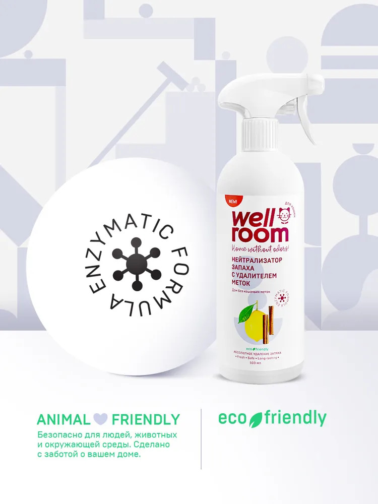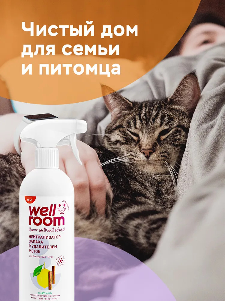Wellroom Нейтрализатор запаха против меток кошек и котов «Цитрус и корица»В данный момент этот товар отсутствует в продаже. Возможно, у нас найдется аналогичный или похожий товар здесь. Нейтрализатор запаха с удалителем меток Wellroom поможет сохранить чистоту и свежесть дома хозяевам котов и кошек. Энзимы в составе расщепляют органические загрязнения, не оставляя следов от меток. Нейтрализатор действует на молекулярном уровне, не маскируя запахи, а связывая их молекулы. Эффективно обеззараживает поверхности и способно удалить запахи в труднодоступных местах. Высыхает без разводов, оставляя ненавязчивый аромат лимона и грейпфрута с нотами корицы. Создано с заботой о вашем доме, безопасно для животных, людей и окружающей среды. |