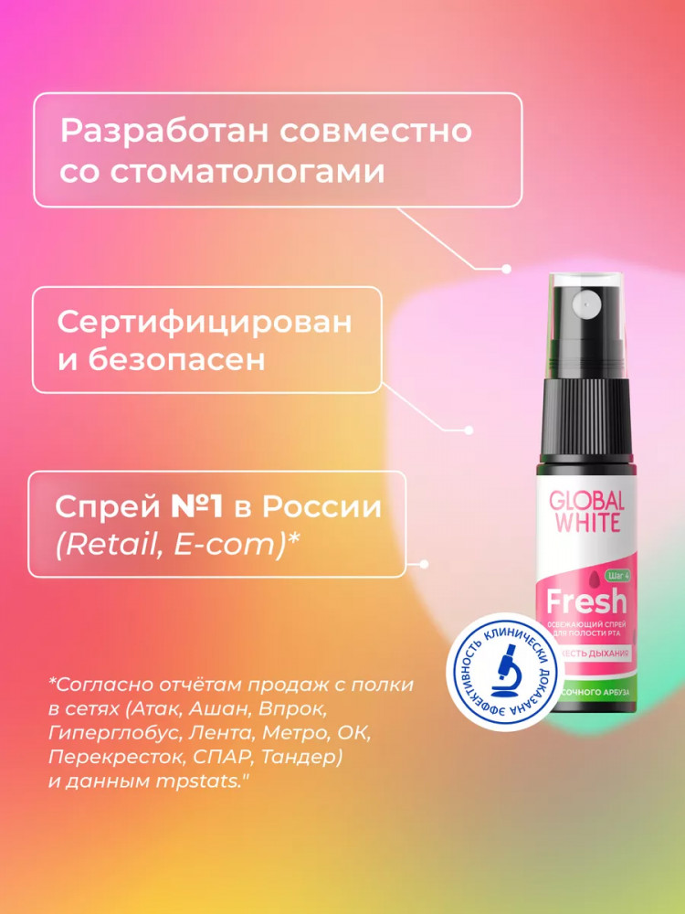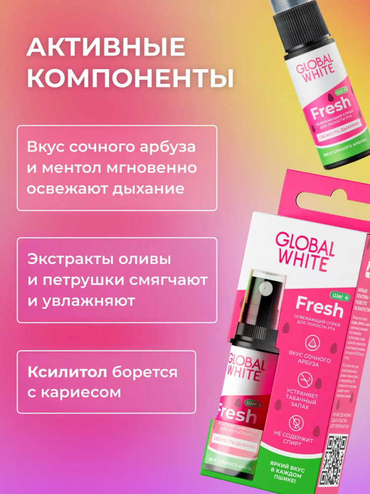 Global White Спрей для полости рта освежающий со вкусом арбуза