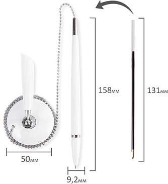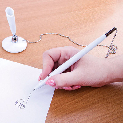 💳 Оплатить за товар можно при получении 🇰🇿 Есть бесплатная доставка по Казахстану от 1 дня 🎁 Копите бонусы с каждой покупки Настольная шариковая ручка с классическим дизайном прекрасно впишется в интерьер любого офиса, информационного бюро и т.д. Корпус ручки и подставки выполнен из пластика белого цвета с хромированными деталями. Ручка крепится к подставке с помощью крепкой цепочки и фиксируется на любой ровной поверхности с помощью клейкого основания на массивной подставке. Длина стержня составляет 130 мм. Диаметр основания — 5 см. Создает линию письма толщиной 0,5 мм. Цвет чернил — синий. |