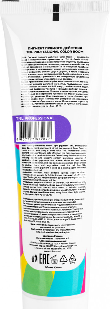 TNL Professional Пигмент прямого действия для волос «Color boom», оттенок Фиолетовый