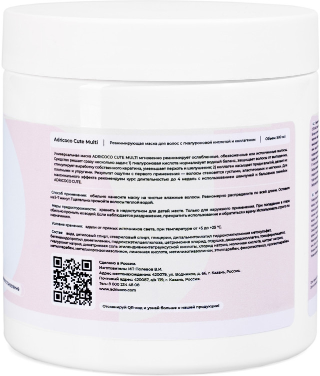 Adricoco Маска для волос с гиалуроновой кислотой и коллагеном
