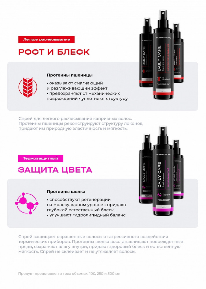 TNL Professional Спрей для волос с протеинами пшеницы для лёгкого расчесывания «Рост и блеск»