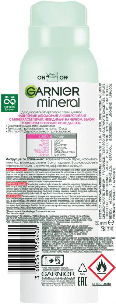 💳 Оплатить за товар можно при получении 🇰🇿 Есть бесплатная доставка по Казахстану от 1 дня 🎁 Копите бонусы с каждой покупки Дезодорант-антиперспирант обогащен минералом перлит. Защита от потоотделения. Против белых следов, желтый пятен и выцветания. Позволяет коже дышать. Дезодорант-антиперспирант Garnier «Невидимый» с активными минералами, защита 48 часов. |