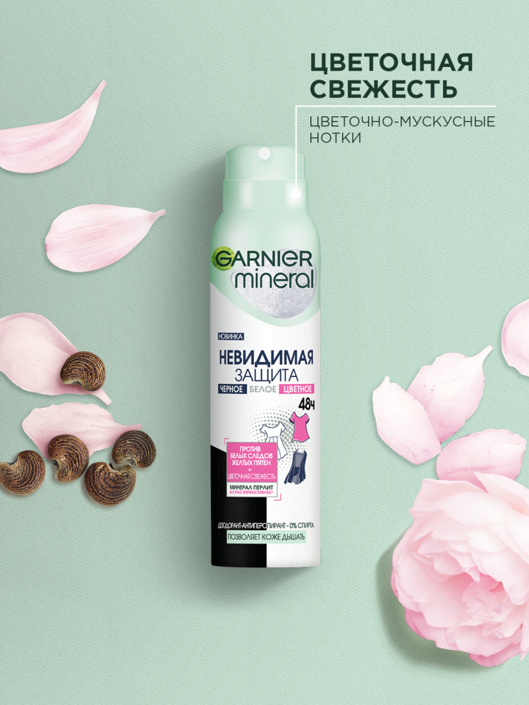 Garnier Дезодорант-антиперспирант спрей для тела «Mineral Невидимая защита 48 ч. Цветочная свежесть»-25% +66