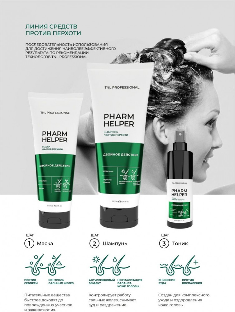 TNL Professional Шампунь против перхоти с аллантоином и пироктон оламиномВ данный момент этот товар отсутствует в продаже. Возможно, у нас найдется аналогичный или похожий товар здесь. Серия: Pharm helper Шампунь TNL Professional Pharm Helper против перхоти предназначен для бережного очищения кожи головы и регуляции себума. Средство контролирует работу сальных желез, снимает зуд и раздражение. Пироктон оламин и аллантоин устраняют грибок, оказывают бактерицидный эффект и успокаивают кожу головы. При регулярном применении кожа головы становится чистой и здоровой. Шампунь нормализует выработку себума, поддерживает естественный уровень pH. Для достижения максимально эффективного результата рекомендуется использовать полную линию средств TNL Professional Pharm Helper против перхоти: маску, шампунь и тоник. |