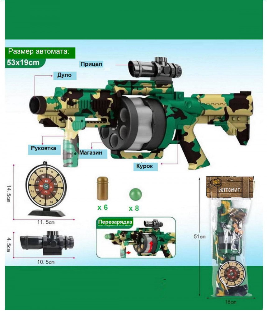 💳 Оплатить за товар можно при получении 🇰🇿 Есть бесплатная доставка по Казахстану от 1 дня 🎁 Копите бонусы с каждой покупки Серия: Боевая сила Игрушечный автомат со съемным прицелом, и барабаном будет отличным подарком для мальчиков. Ведь игры с оружием их любимая забава. Автомат имеет внушительный размер, камуфляжный дизайн, он удобный в обращении. Бластер может стрелять как пульками, так и шариками. Загрузив их в барабан, ребенок сможет производить выстрел за выстрелом, передергивая рукоятку, благодаря поворотному механизму барабана. Тренировать меткость поможет мишень, дополняющая набор. Игра с автоматом будет гарантировано интересной и увлекательной. |