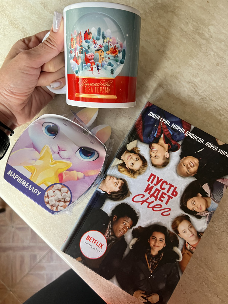 Получила посылку, мне всё понравилось! Подарки очень крутые! Спасибо огромное! Вчера только мне порекомендовали эту книгу и я хотела прочесть её, это замечательно. А какие кружки классные! Будем пить чай с шоколадом. Надеюсь, мой тайный санта это прочтёт, жаль, что не получила уведомление и не знаю ни имени тайного санты. Благодарю вас за подаренные эмоции счастья! Надеюсь и вы получили свой подарок и ваш санта обрадовал вас.