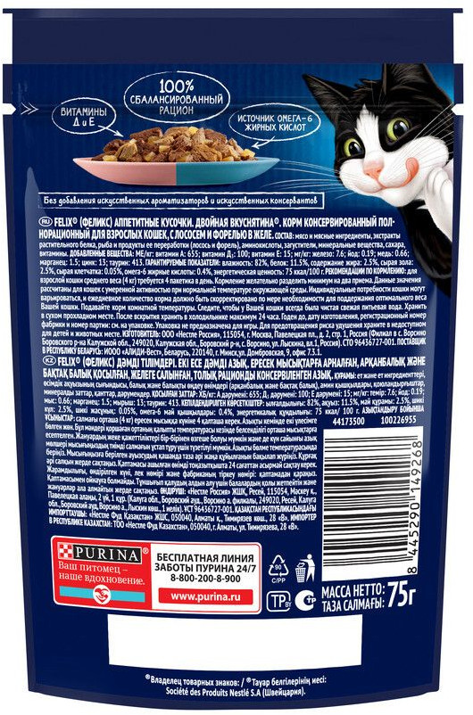 Felix Корм для кошек с лососем и форелью в желе «Двойная вкуснятина»