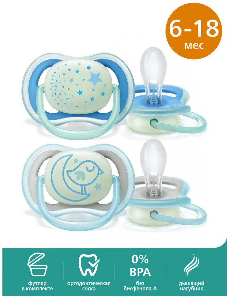 Успокойте своего малыша с помощью пустышки, которая позволяет коже дышать. Пустышка Philips Avent Ultra air имеет большие вентиляционные отверстия, поддерживающие сухость кожи. Легкий нагубник обеспечивает максимальный поток воздуха. Кроме того, на пустышке есть светящаяся в темноте кнопка, которая позволяет найти пустышку при выключенном свете. В комплекте с пустышкой Philips Avent ultra air night идет футляр для хранения и стерилизации. В целях гигиены и безопасности заменяйте пустышки каждые 4 недели.
