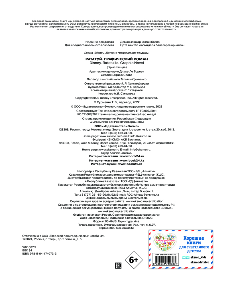 В данный момент этот товар отсутствует в продаже. Возможно, у нас найдется аналогичный или похожий товар здесь. Серия: Disney. Детские графические романы Реми — очень необычный крыс. У него, без преувеличений, самый чуткий нос и изысканные кулинарные вкусы. А еще у Реми есть тайная заветная мечта — стать шеф-поваром, как великий Огюст Гюсто!