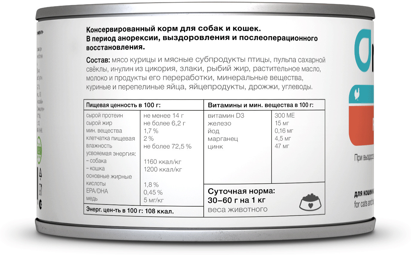 Organix Консервы для кошек и собак в период анорексии «Recovery»В данный момент этот товар отсутствует в продаже. Возможно, у нас найдется аналогичный или похожий товар здесь. Условия хранения товара: температурный режим от -10 до +25°С. |