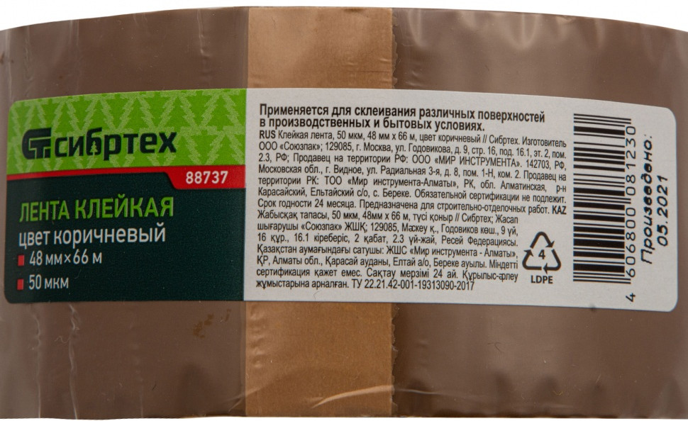 Клейкая лента Сибртех используется для прочного скрепления материалов. Она применяется для заклеивания коробок для сохранности содержимого во время транспортировки и хранения. Лента будет полезна в быту, гараже, цеху.