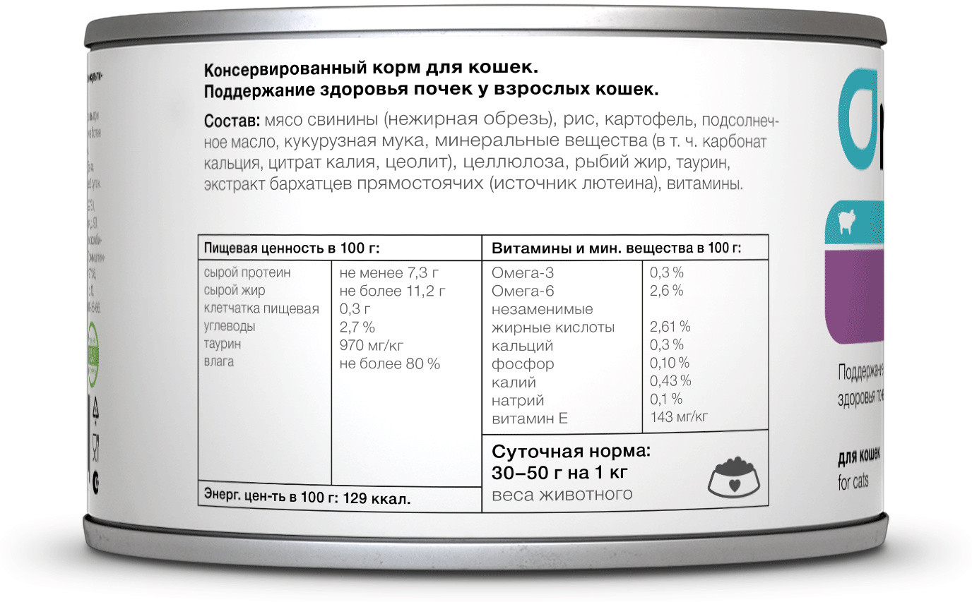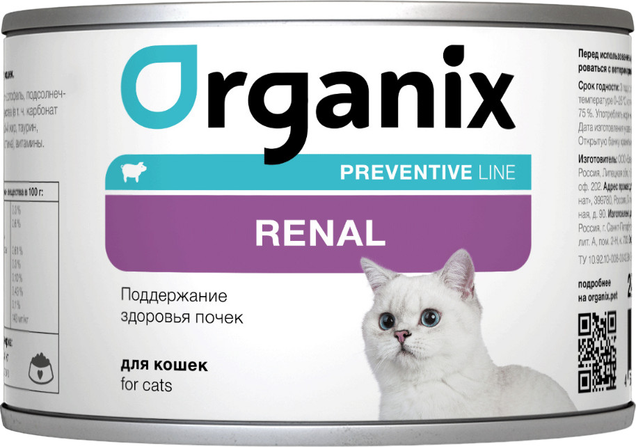 Organix Консервы для кошек «Renal»-20% +43 паштетная консистенция натуральный запах вкусный хорошее усвоение