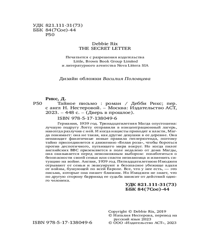 | Тайное письмо Дебби Рикс +175 (бонусов)