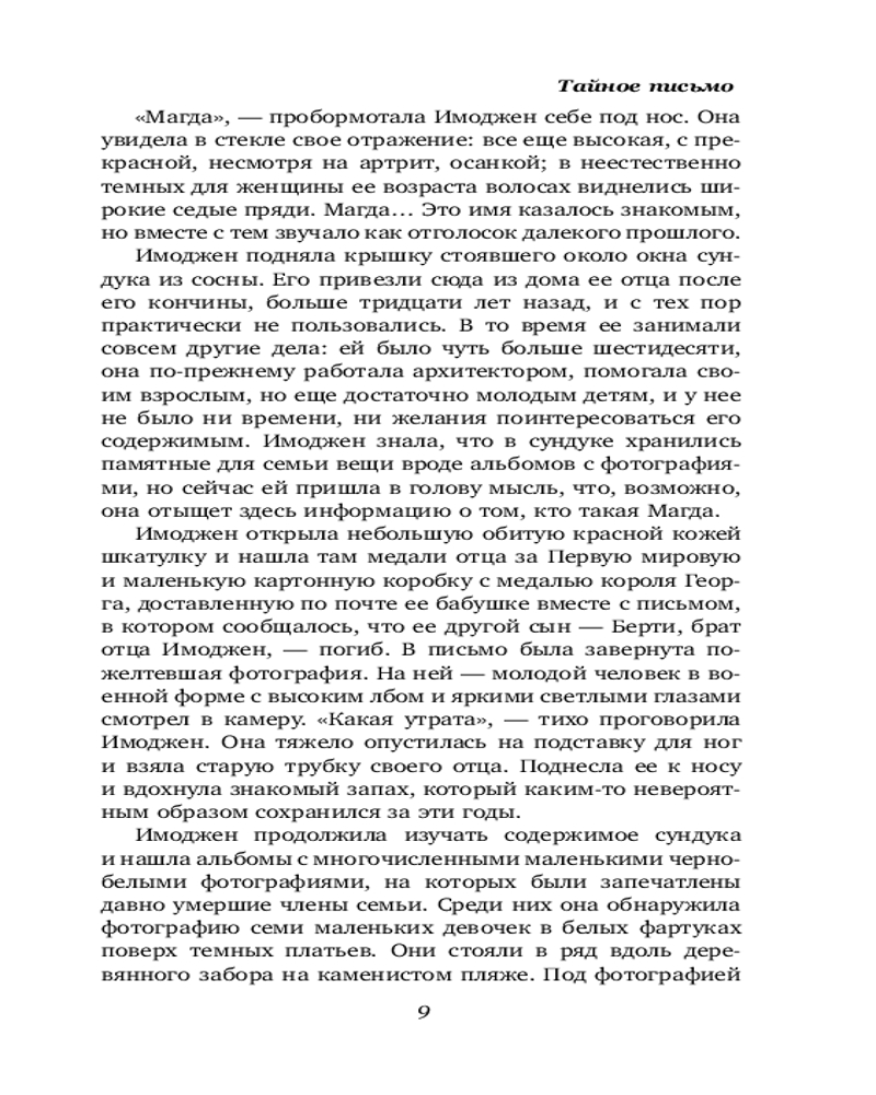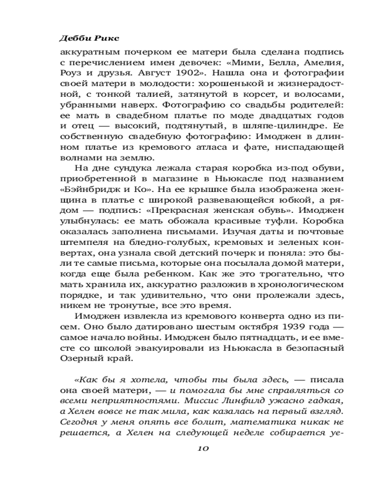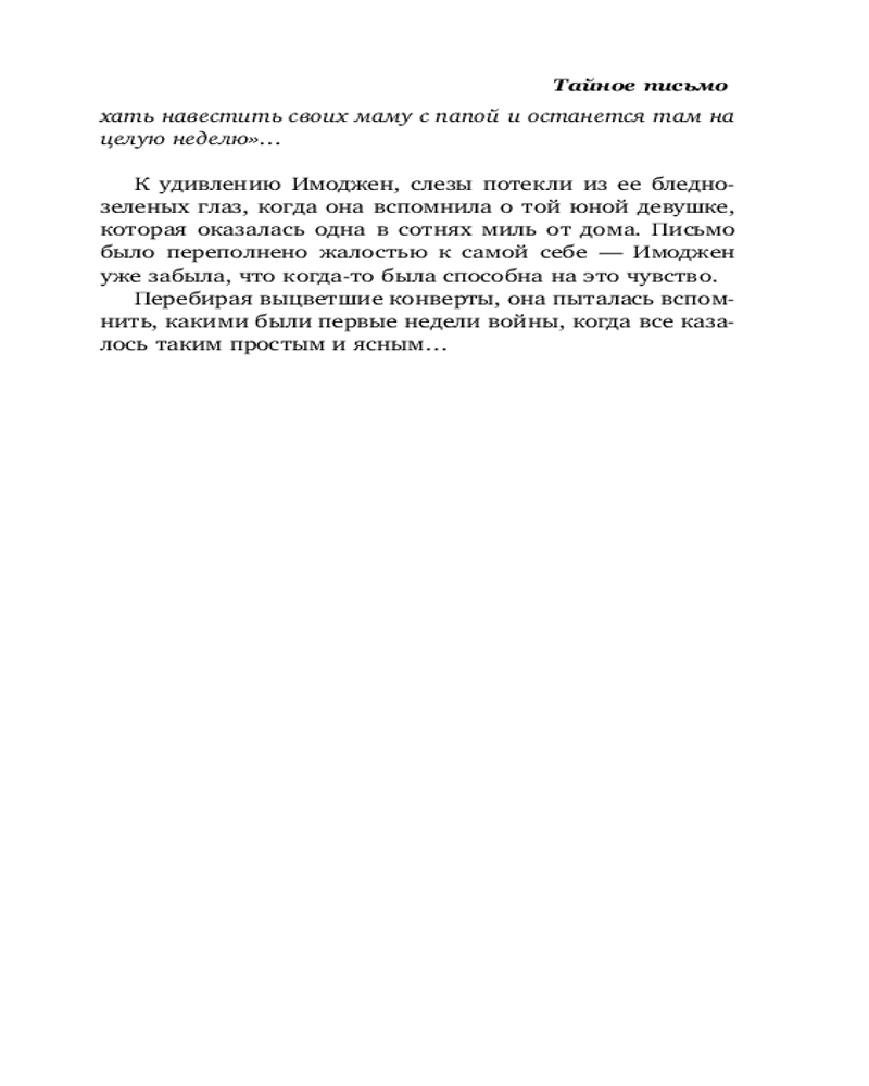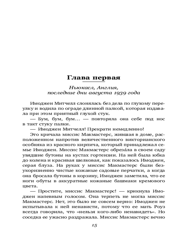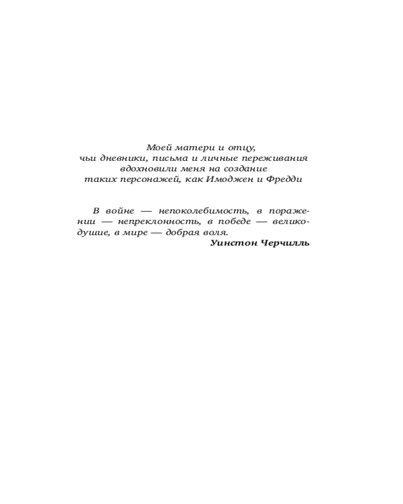 Англия, 1939 год. Пятнадцатилетнюю Имоджен отрывают от семьи и эвакуируют в безопасное убежище вдали от войны, бушующей по всей Европе. Все, что у нее есть, — это письма, которые она пишет близким. Но Имоджен не знает, что по другую сторону баррикад ее судьба зависит от действий одного человека.