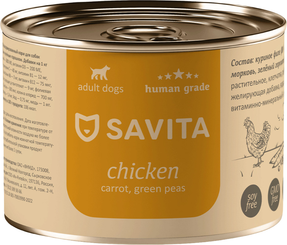 Savita Консервы для собак «Курица с морковью и зеленым горошком»