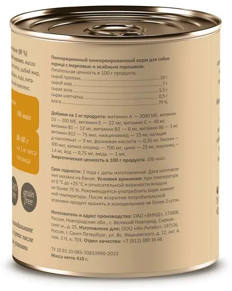 Savita Консервы для собак «Курица с морковью и зеленым горошком»