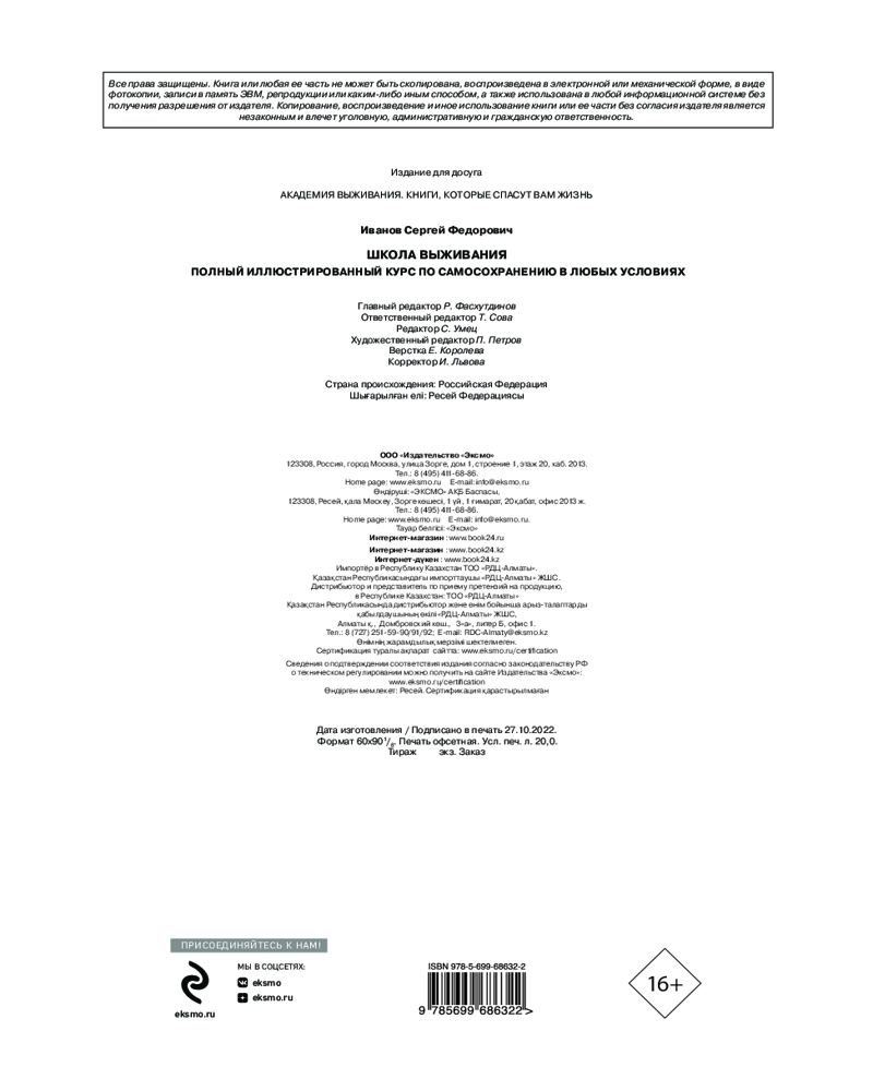 Школа выживания. Полный иллюстрированный курс по самосохранению в любых условияхВ данный момент этот товар отсутствует в продаже. Возможно, у нас найдется аналогичный или похожий товар здесь. Серия: Академия выживания. Книги, которые спасут вам жизнь Вы потерялись в лесу, и у вас нет с собой ни воды, ни еды? Кто-то срочно нуждается в медицинской помощи, а никого кроме вас рядом нет, чтобы помочь? Как вести себя в экстремальной ситуации и обезопасить свою жизнь? Эта книга предлагает подробные и четкие инструкции, как следует действовать в опасных ситуациях в дикой природе, при стихийном бедствии или аварии, в современном городе, при путешествии за границу. Порядок действий в том или ином случае проиллюстрирован понятными картинками, что сделает ваше чтение не только полезным, но и увлекательным. |