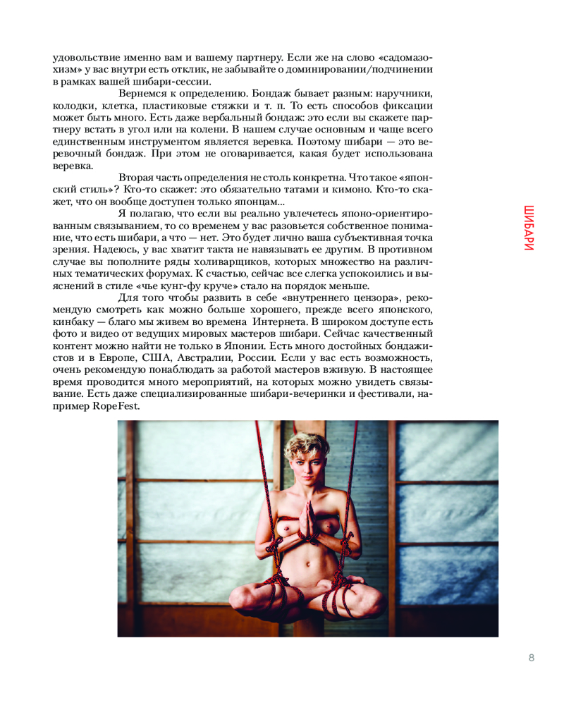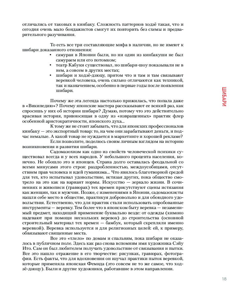 Серия: Камасутра XXI века для продвинутых Впервые на российском рынке книга по шибари — японскому искусству связывания. Автор — Борис Мосафир, бондажист с мировым именем, обучает шибари более 10 лет. Его семинары и выступления, помимо России, проходили в Италии, Франции, Германии, Испании, Финляндии и других странах Европы, а также в Бразилии. Борис организовал первый в России фестиваль RopeFest и основал школу RopeSchool. Эта книга не только о том, как связывать, но и о том, зачем мы это делаем. |