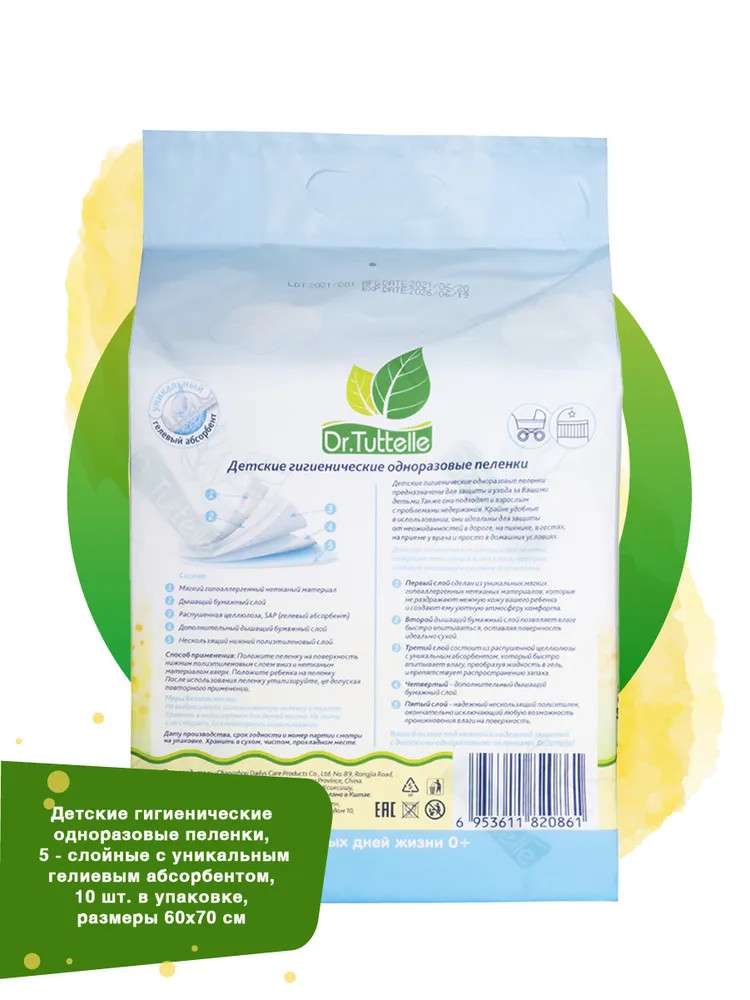 Детские гигиенические одноразовые пеленки Dr.Tuttelle незаменимы с первого дня жизни. Предназначены для защиты и ухода за Вашими детьми. Так же они подходят и взрослым с проблемными недержаниями. Крайне удобны в использовании, они идеальны для защиты от неожиданностей в дороге, на пикнике, в гостях, на приеме у врача и просто в домашних условиях. Содержат пять уникальных слоев.