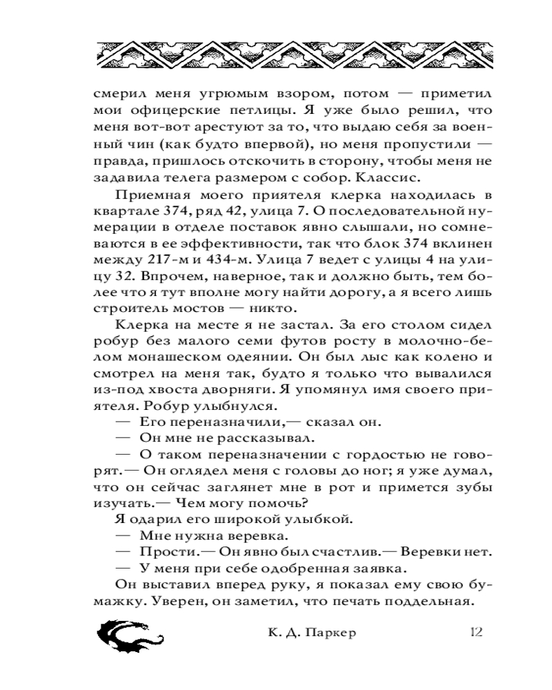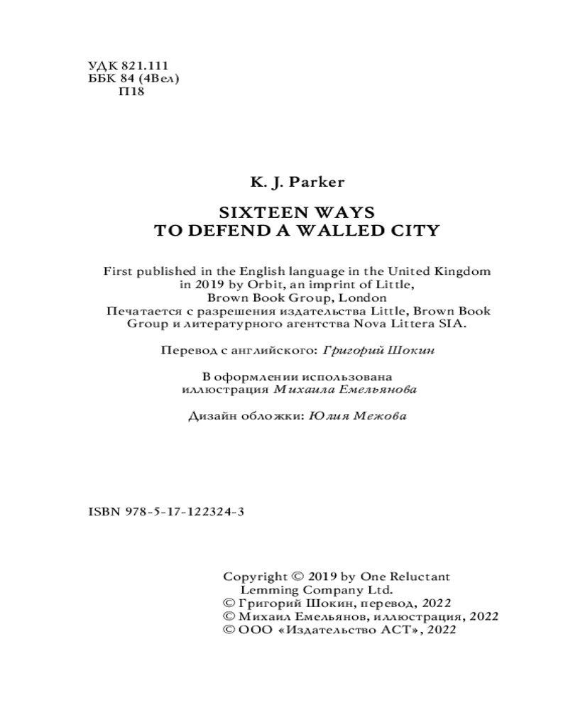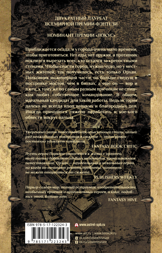 Шестнадцать способов защиты при осадеВ данный момент этот товар отсутствует в продаже. Возможно, у нас найдется аналогичный или похожий товар здесь. Серия: Шедевры фэнтези Приближается осада, и у города очень мало времени, чтобы приготовиться. Нет еды, нет оружия, а противник поклялся вырезать всех, кто остался за крепостными стенами. Чтобы спасти город, нужно чудо, но у местных жителей, так получилось, есть только Орхан. Полковник инженерной части, он больше сведущ в постройке мостов, чем в битвах, а еще он — вор и лжец, к тому же по самым разным причинам не слишком любит собственное командование. В общем, идеальный кандидат для такой работы. Ведь история далеко не всегда плод великих и благородных дел. Иногда приходится тяжело поработать и кое-кого обвести вокруг пальца. |