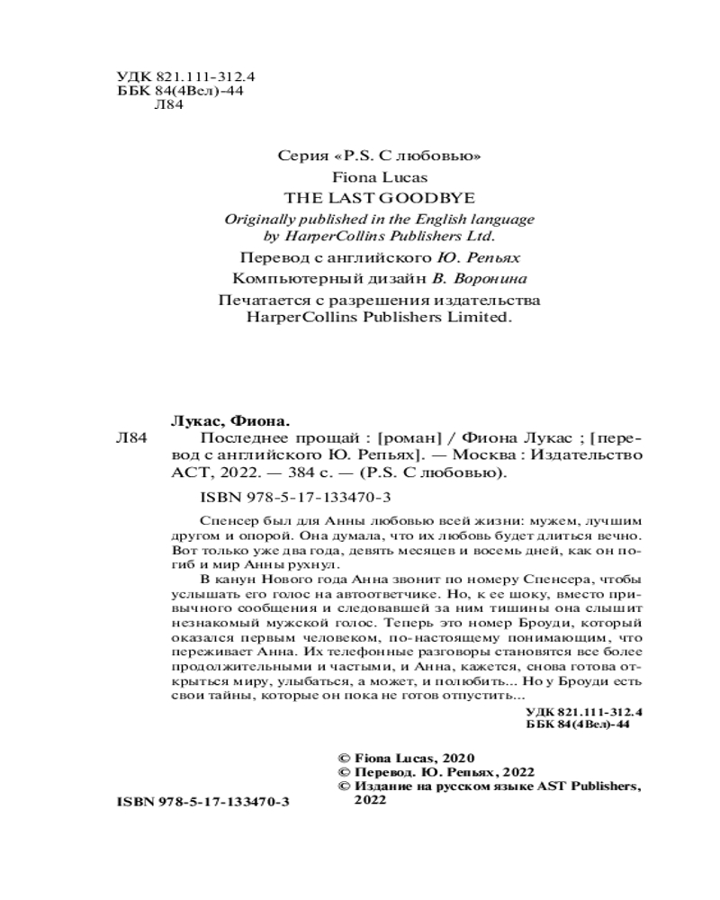 Серия: P.S. С любовью Спенсер был для Анны любовью всей жизни: мужем, лучшим другом и опорой. Она думала, что их любовь будет длиться вечно. Вот только уже два года, девять месяцев и восемь дней, как он погиб и мир Анны рухнул. |