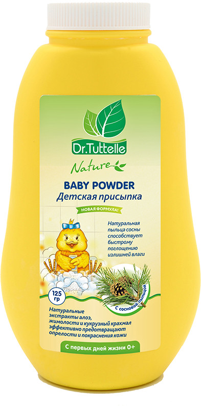 Dr.Tuttelle Присыпка детская с сосновой пыльцой+93 аромат не скомкивается упаковка белые следы