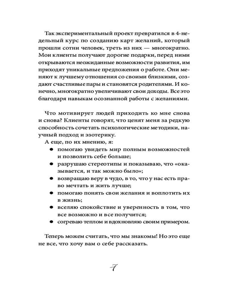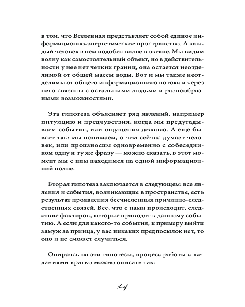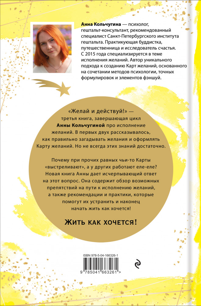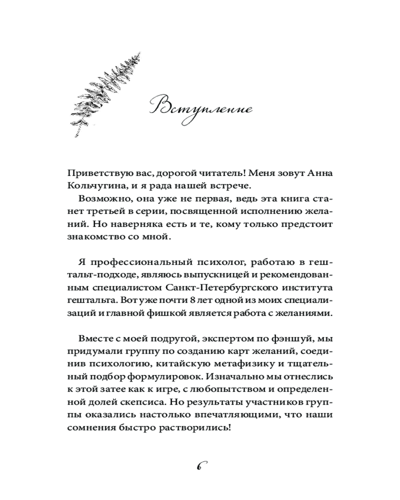 Желай и действуй! Гайд по устранению ошибок в карте желанийВ данный момент этот товар отсутствует в продаже. Возможно, у нас найдется аналогичный или похожий товар здесь. Серия: Светлая магия Человек, умеющий загадывать желания, даже в самые сложные времена будет иметь преимущество и получать от жизни больше остальных — считает Анна Кольчугина, психолог, автор уникального подхода к работе с желаниями, объединившего науку с эзотерикой. Это мнение подтверждается успехами сотен людей, прошедших ее курсы. |