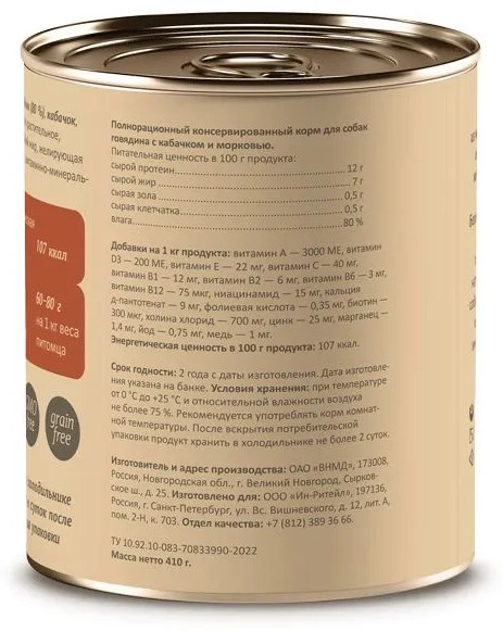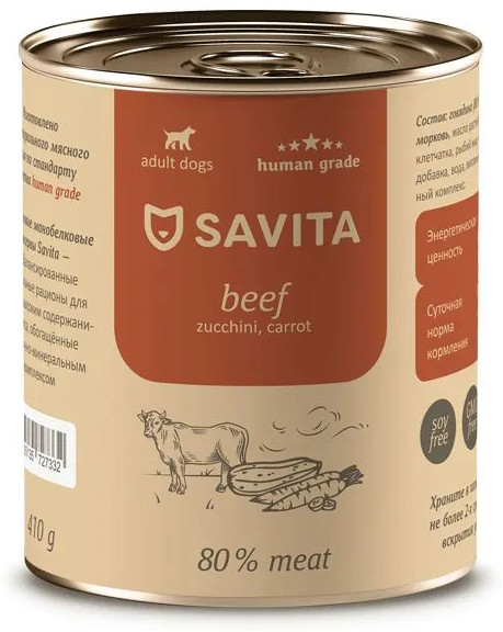 Savita Консервы для собак «Говядина с кабачком и морковью»