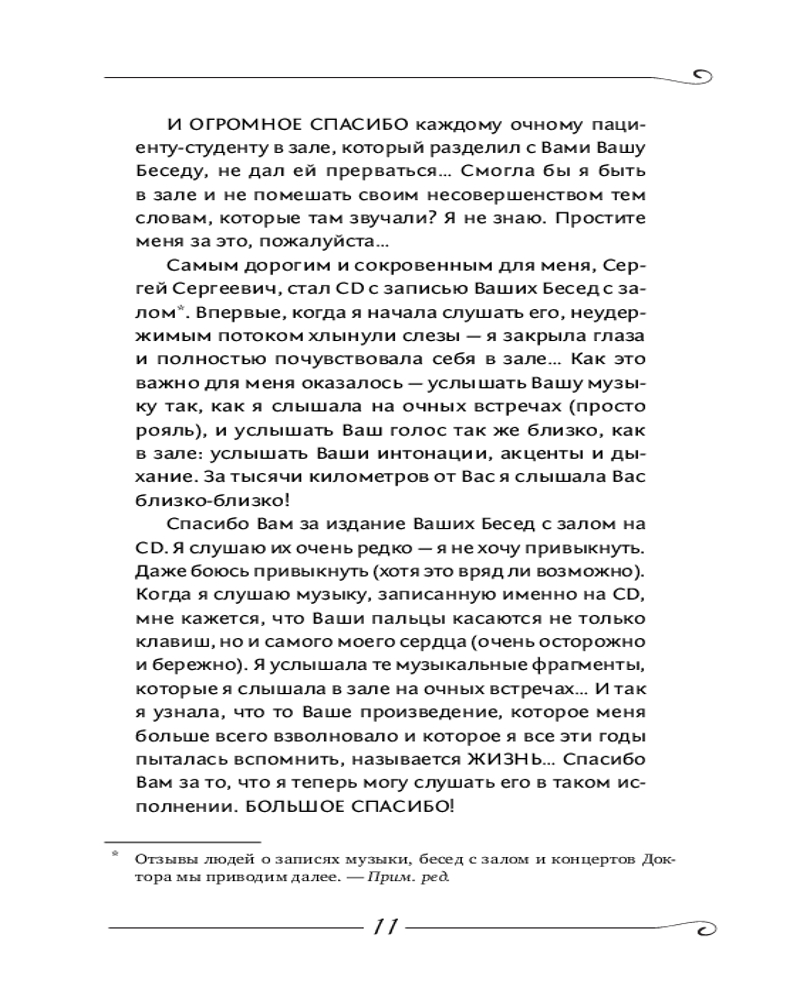 • тем, кто живет далеко от Москвы и Санкт-Петербурга и не может присутствовать на лекциях и встречах Доктора, но хочет «слышать» его слова. |