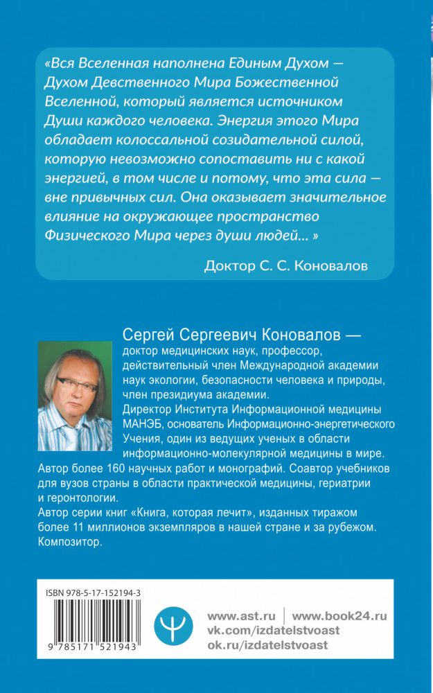 Серия: Медицина будущего Эта книга всемирно известного врача и ученого, доктора медицинских наук, профессора Сергея Сергеевича Коновалова — настоящий помощник для всех очных и заочных пациентов-студентов Доктора на пути Исцеления.