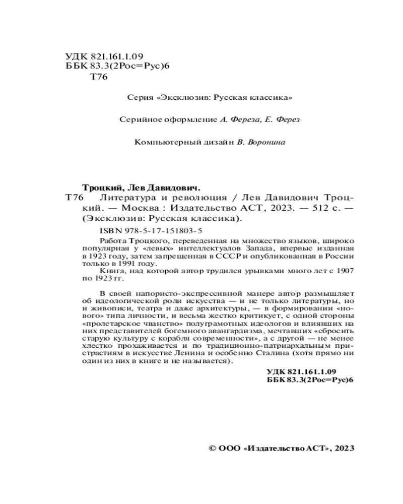В данный момент этот товар отсутствует в продаже. Возможно, у нас найдется аналогичный или похожий товар здесь. Серия: Эксклюзив: Русская классика Работа Троцкого, переведенная на множество языков, широко популярная у «левых» интеллектуалов Запада, впервые изданная в 1923 году, затем запрещенная в СССР и опубликованная в России только в 1991 году.
