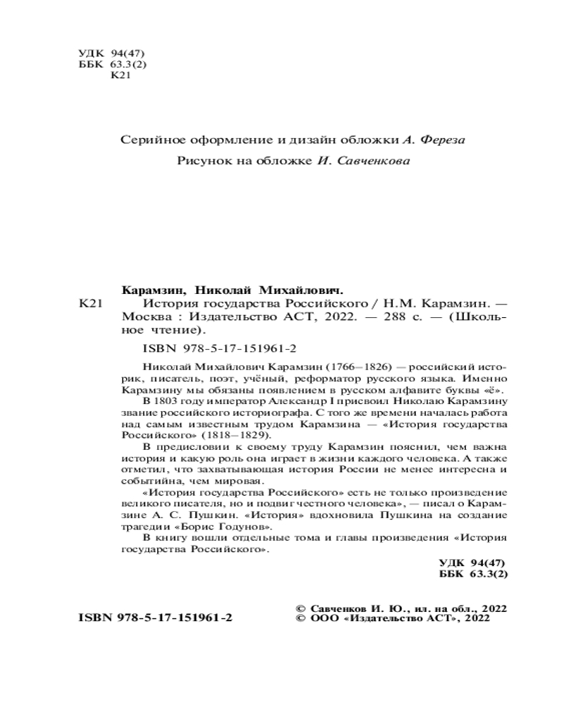💳 Оплатить за товар можно при получении 🇰🇿 Есть бесплатная доставка по Казахстану от 1 дня 🎁 Копите бонусы с каждой покупки Серия: Школьное чтение Николай Михайлович Карамзин (1766-1826) — российский историк, писатель, поэт, учёный, реформатор русского языка. Именно Карамзину мы обязаны появлением в русском алфавите буквы «ё». |