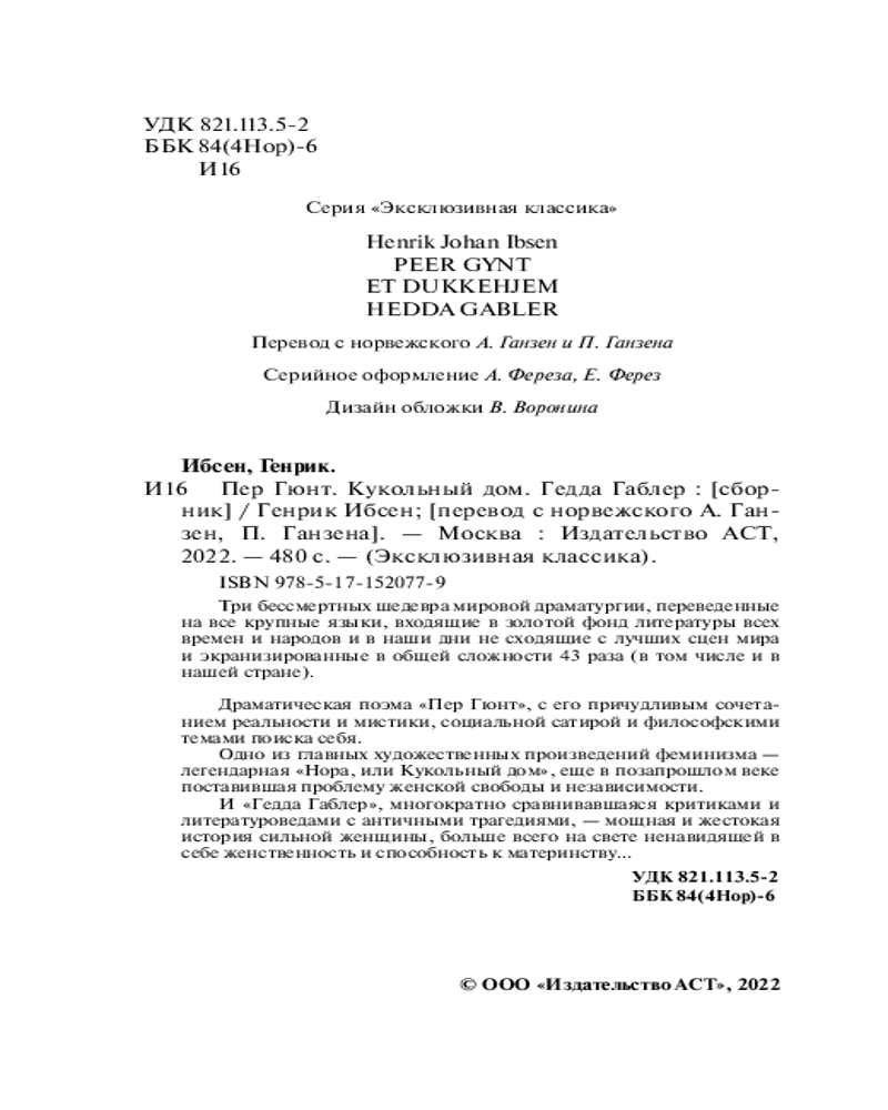 Пер Гюнт. Кукольный дом. Гедда Габлер-15% +19 содержание произведение качество