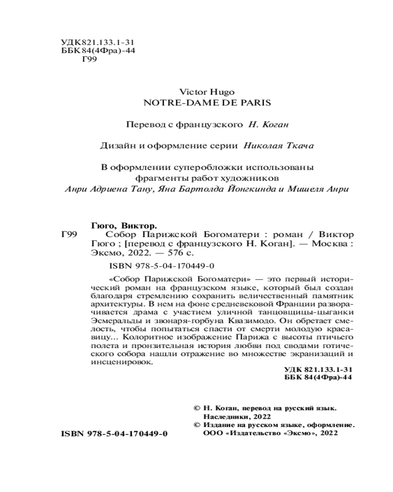 Собор Парижской БогоматериВ данный момент этот товар отсутствует в продаже. Возможно, у нас найдется аналогичный или похожий товар здесь. Серия: КиС (Классическая и Современная литература) Знаменитый исторический роман Гюго. |