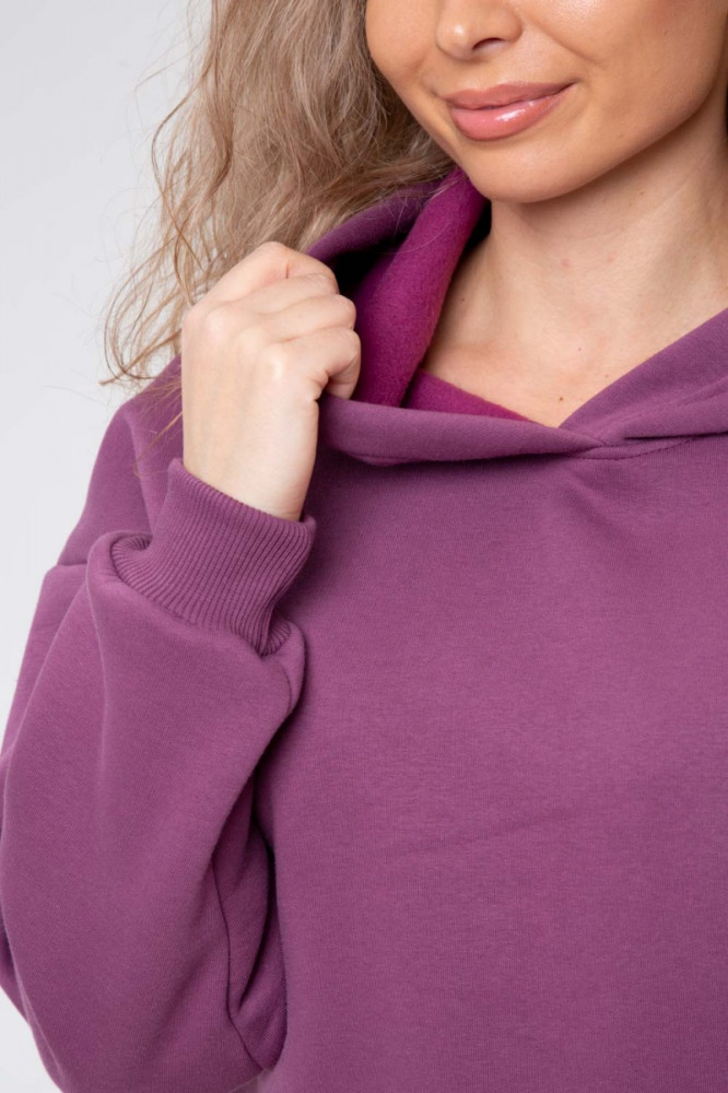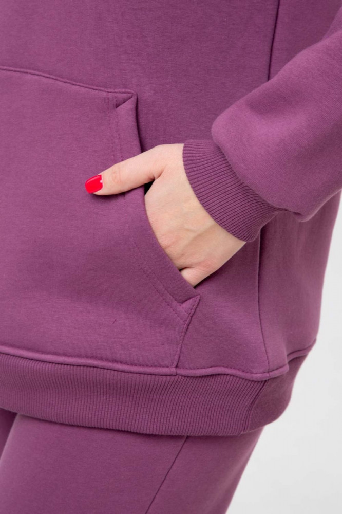 Костюм из футера — состоит из толстовки и брюк. Толстовка — прямой, свободный силуэт с капюшоном. Рукав длинный, втачной, по низу рукава манжет. По центру полочки внизу карман кенгуру. Брюки прямые, зауженные к низу.